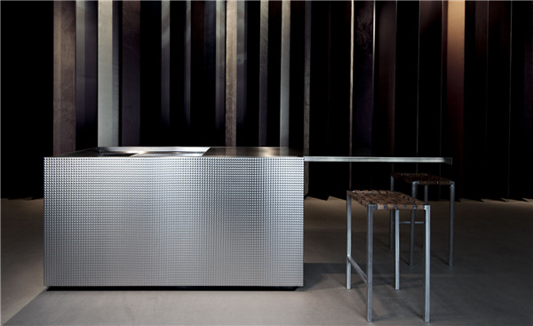 Minimalist designer Norbert Wangen has unveiled a kitchen called Forever. The minimalist geometry of the furniture seems to come from the far reaches of space, and the corian's combination of steel makes it look incongrous.